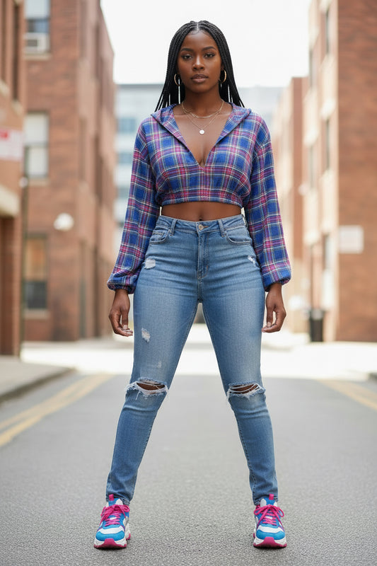 SaleCropped Plaid Top